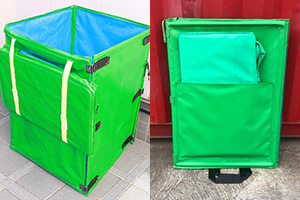 - 1セット4.2kg(標準品)と軽量かつコンパクト、本体を広げて袋口をかぶせるだけで簡単にフレコンが自立します。